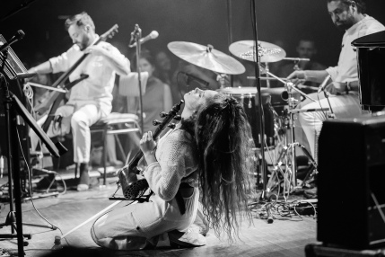 voice, Cinque Ubangi on the drums, Amit Peled on the electric